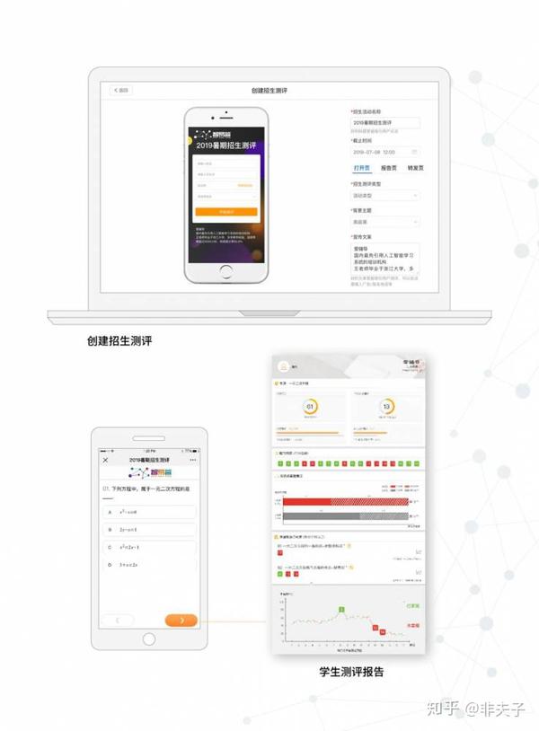 智易答系统中包含了智能测评、智能课堂、智能练习和数据分析等功能模块,其中智能测评功能通过测试题,可精准定位学生的知识薄弱点,并生成详细的测试报告,让学生更清楚自己的学习情况。校长们可以将智能测评的题目分享至朋友圈或家长群,吸引家长和学生的注意。也可以将学生测评报告进行分享,以更直观的方式让家长了解学生的知识薄弱点,扩大招生渠道。针对招生,系统也可生成专门的招生测评,精准定位学生知识薄弱点的同时,快速获取家长联系方式等信息,以获取更多的生源。